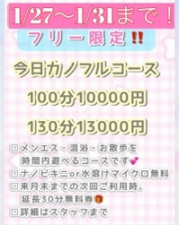 | 1月27日~1月31日まで開催💕 👙フリー限定 今日カノフルコース👙 |