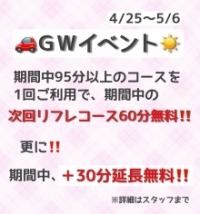 | GWはリフレで遊び倒しちゃおう!4/25~5/6まで💘 |